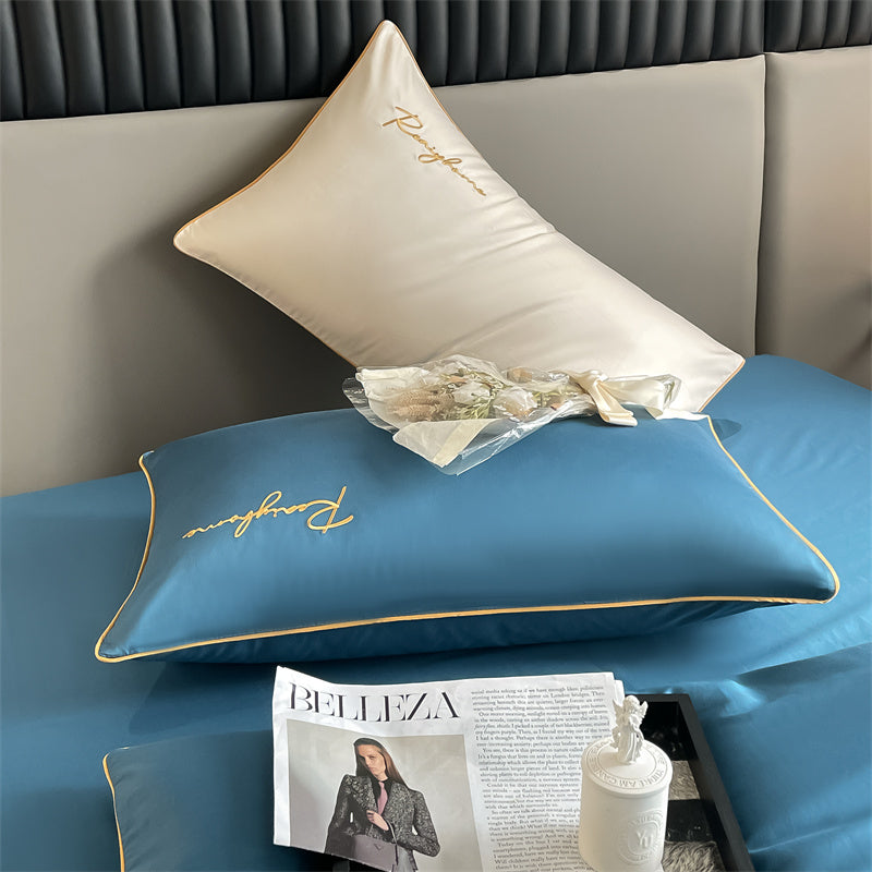 Our 60-count Long-Staple Cotton Double Embroidered Luxe Series Bed Sheet is just the high-quality bed sheet you're looking for. Made from 100% cotton and adorned with exquisite embroidery prints, this bed sheet will add a touch of luxury and elegance to your sleeping environment. We have a variety of sizes and colors to choose from, including Bentley Blue, Gemstone Blue, Mung Bean, Advanced Grey, Clear Sea, Light Blue, Roland Purple, Pumpkin Orange, Milkshake White, Lead Grey, etc., to meet your diverse needs and preferences. Single Bed Sheet.